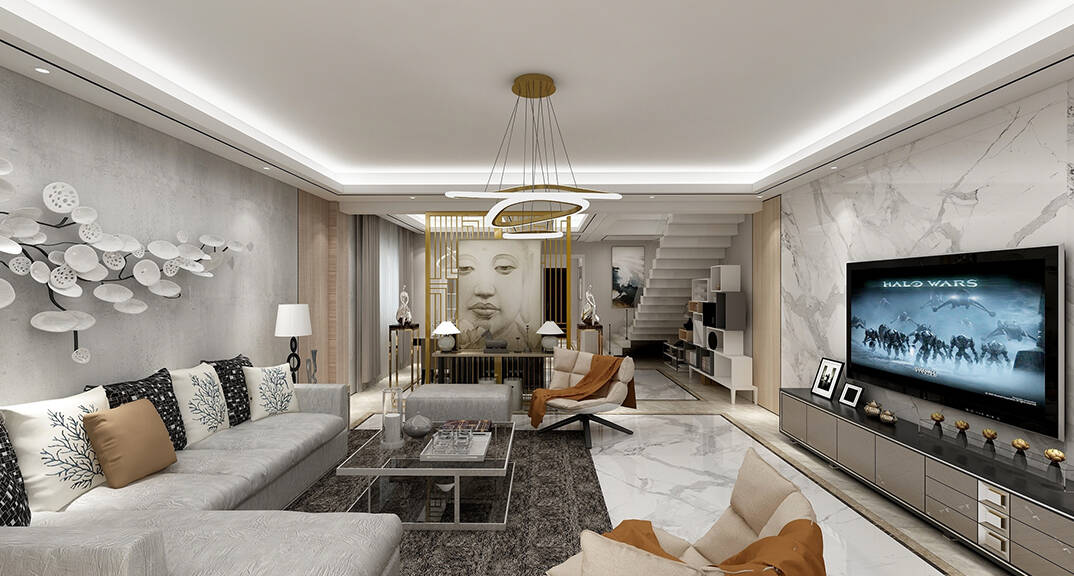 王哥莊350m2自建別墅客廳簡約風(fēng)格裝修案例效果圖