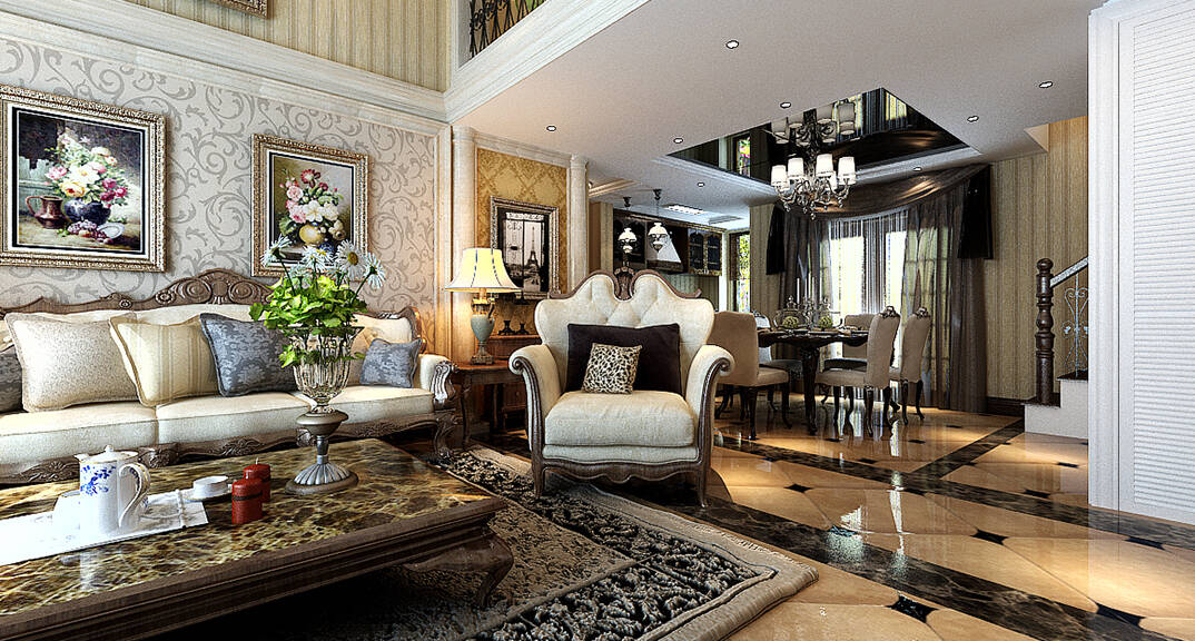 中冶圣喬維斯268㎡別墅客廳沙發(fā)美式風格裝修案例效果圖