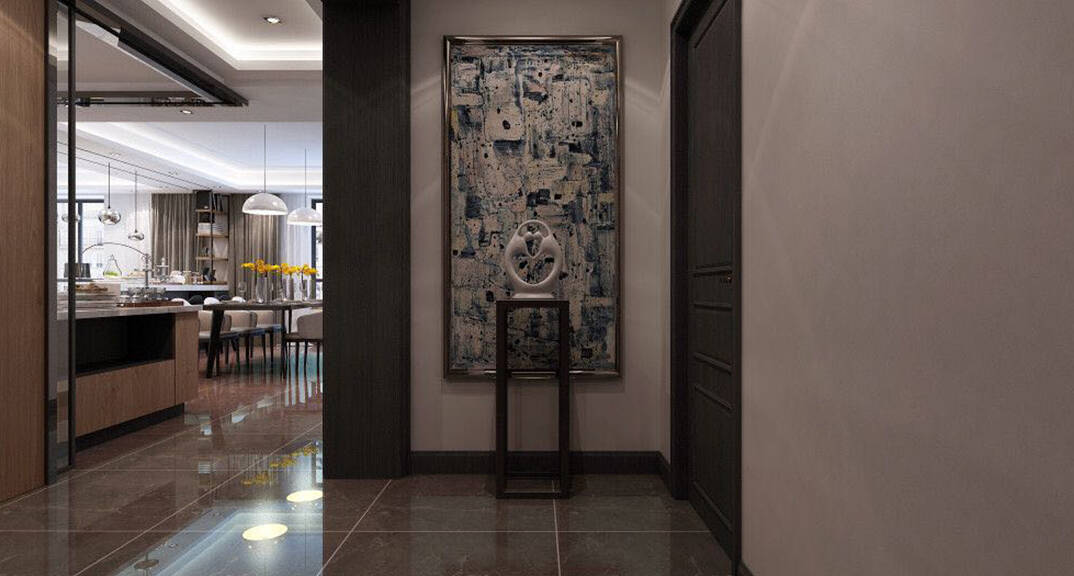 港式門廳和諧、舒適、現(xiàn)代感十足,背景墻面上的裝飾掛畫可以使墻面不至于過于的單調(diào),搭配同色的金屬家具及飾品,整體感覺時尚而又現(xiàn)代。