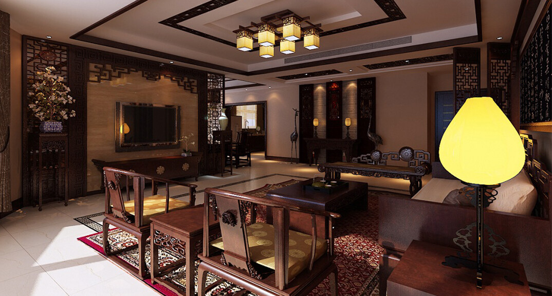 燕島國際172㎡平層客廳中式風(fēng)格裝修案例效果圖