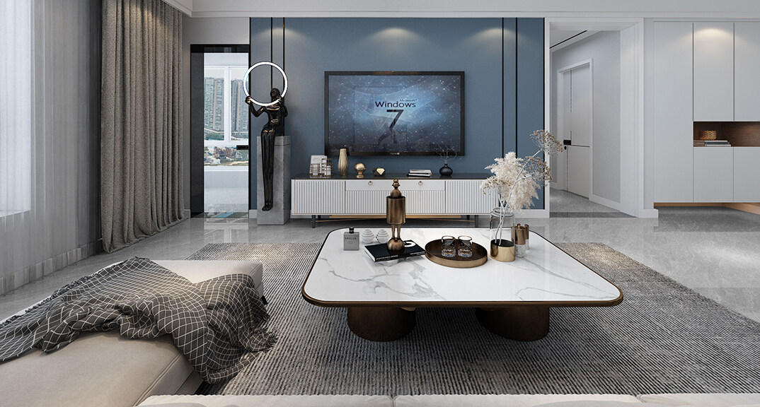 磊鑫伊頓陽光125㎡三室二廳客廳輕奢風(fēng)格裝修案例效果圖