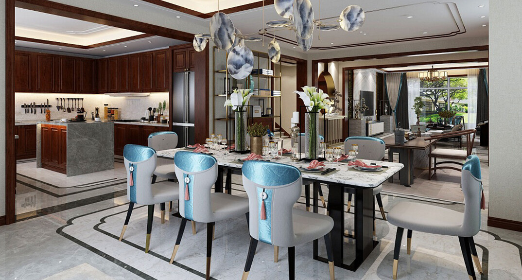 龍湖原山400㎡別墅餐廳美式風(fēng)格裝修案例效果圖