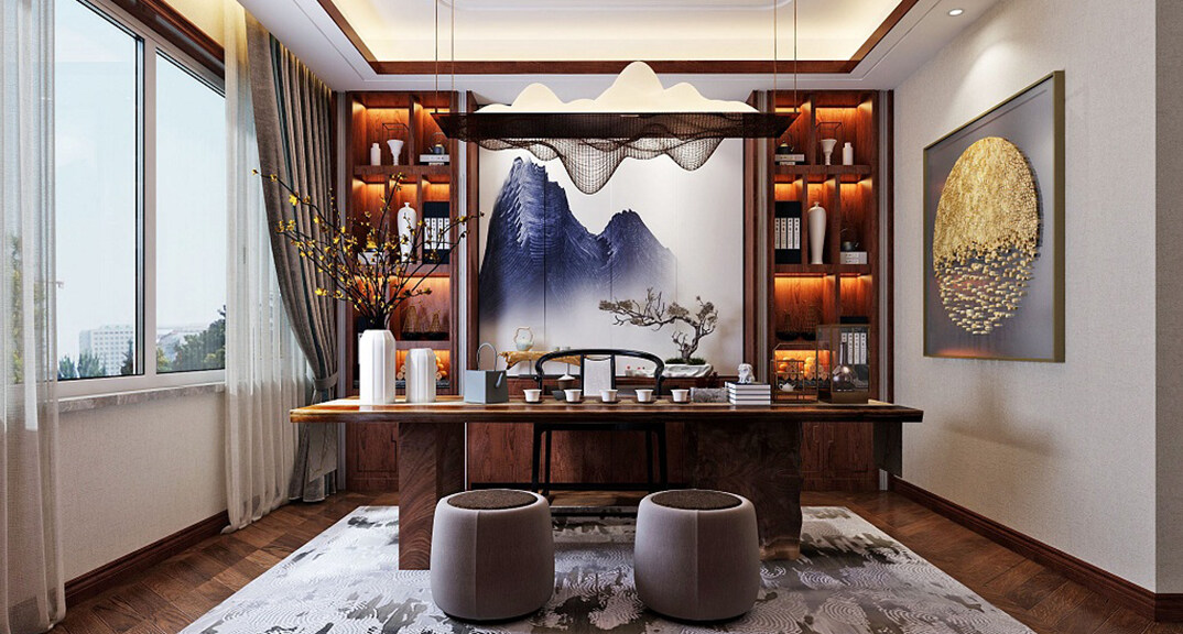龍湖原山400㎡別墅書房美式風(fēng)格裝修案例效果圖