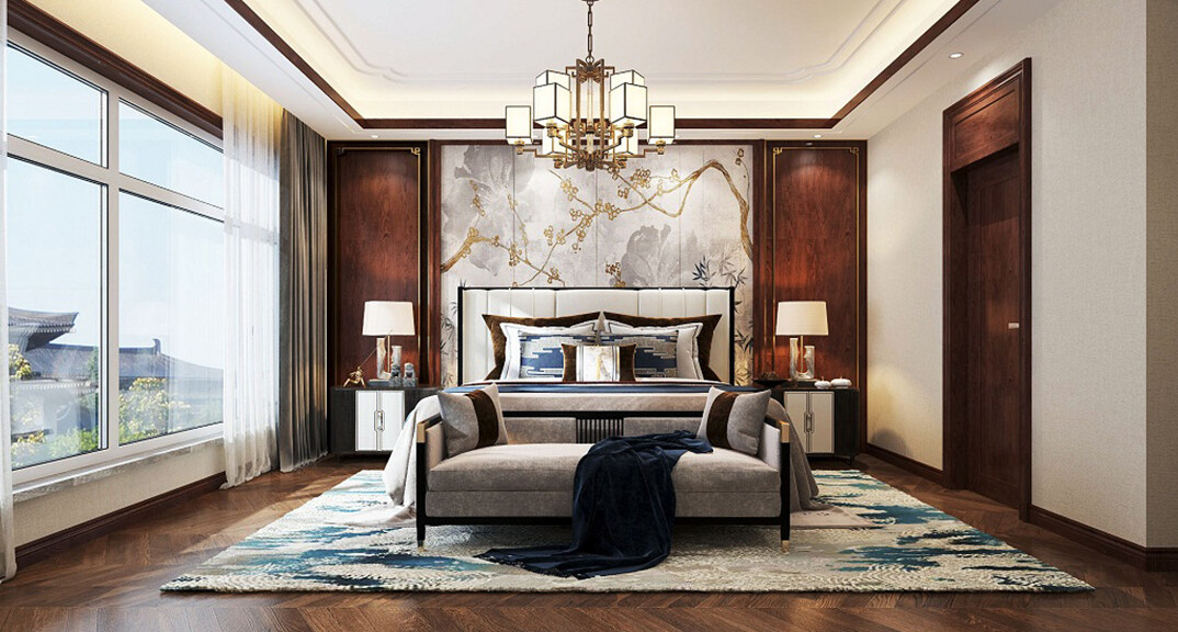 龍湖原山400㎡別墅臥室美式風(fēng)格裝修案例效果圖