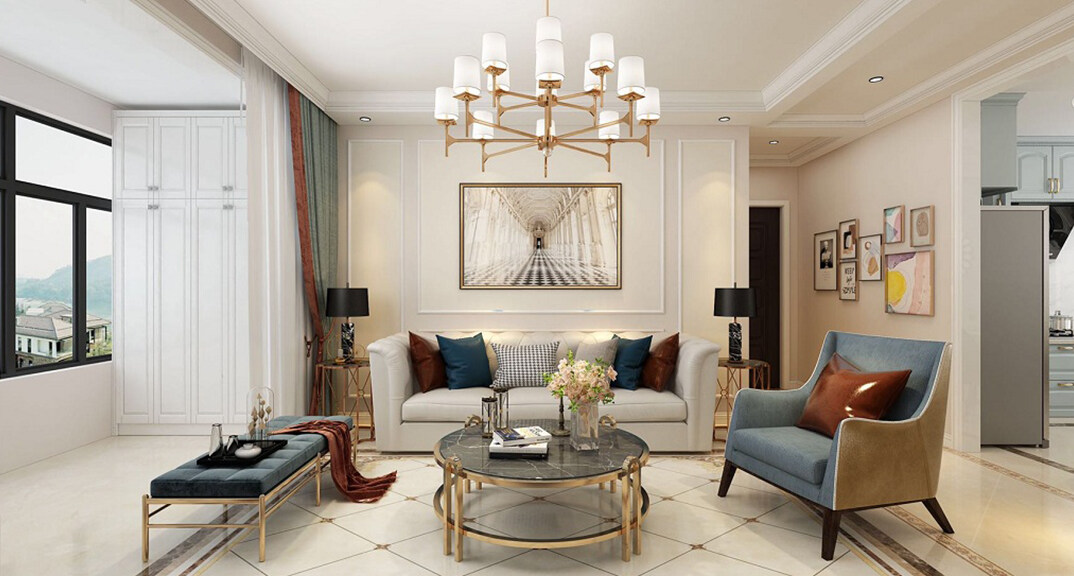 桂花園110㎡三室兩廳客廳輕奢風(fēng)格裝修案例效果圖