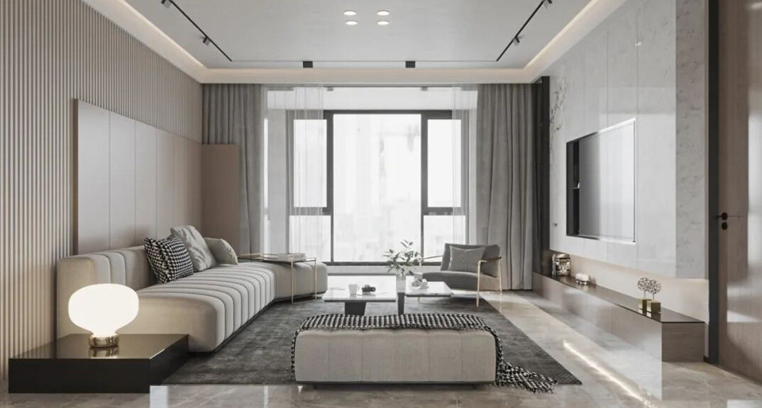 華僑府邸180㎡三室兩廳客廳現(xiàn)代輕奢風(fēng)格裝修案例效果圖