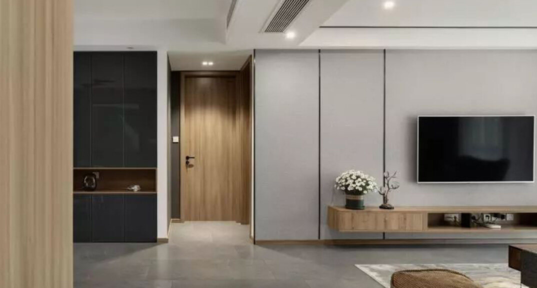 錦華御府169㎡三室兩廳客廳電視走廊現(xiàn)代輕奢風格裝修案例效果圖