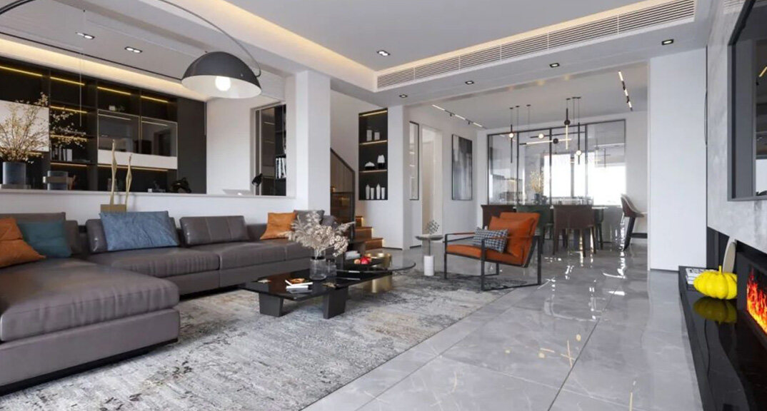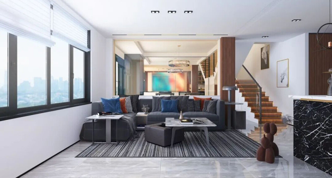 招商·海語墅260㎡別墅客廳簡美風格裝修案例效果圖