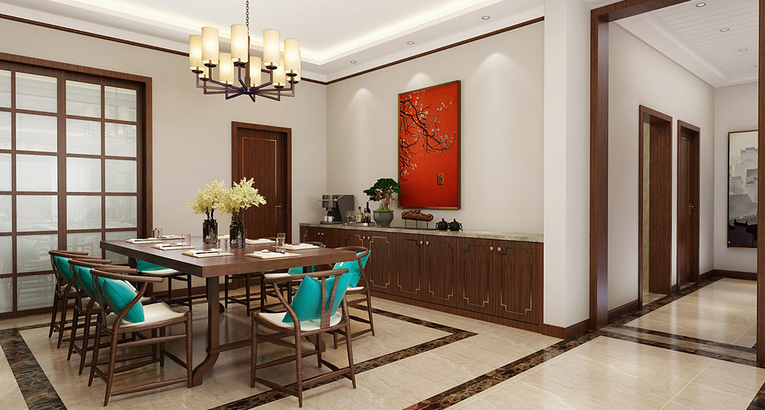 市直三區(qū)260㎡平層餐廳新中式風格裝修案例效果圖
