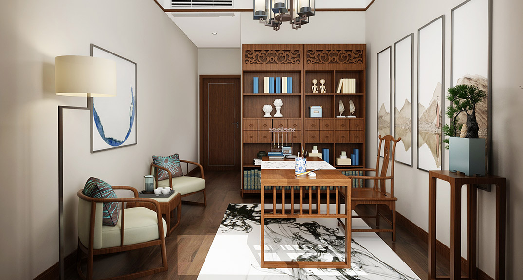 市直三區(qū)260㎡平層書房新中式風格裝修案例效果圖