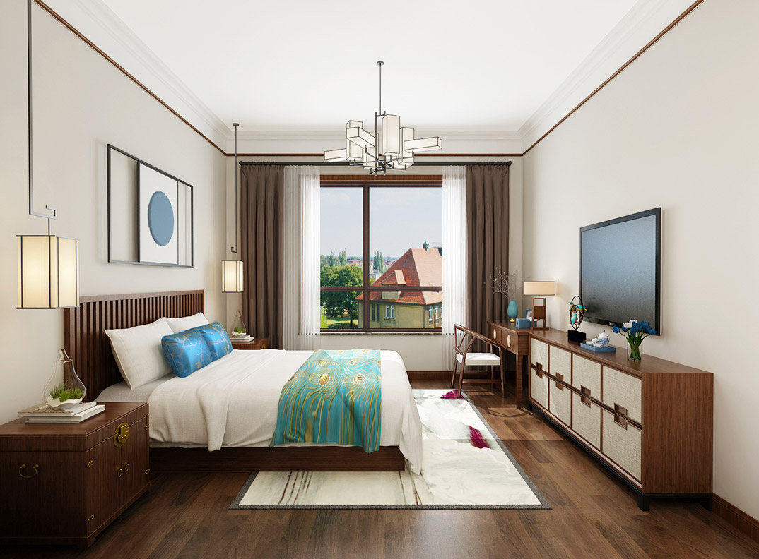 市直三區(qū)260㎡平層臥室新中式風格裝修案例效果圖
