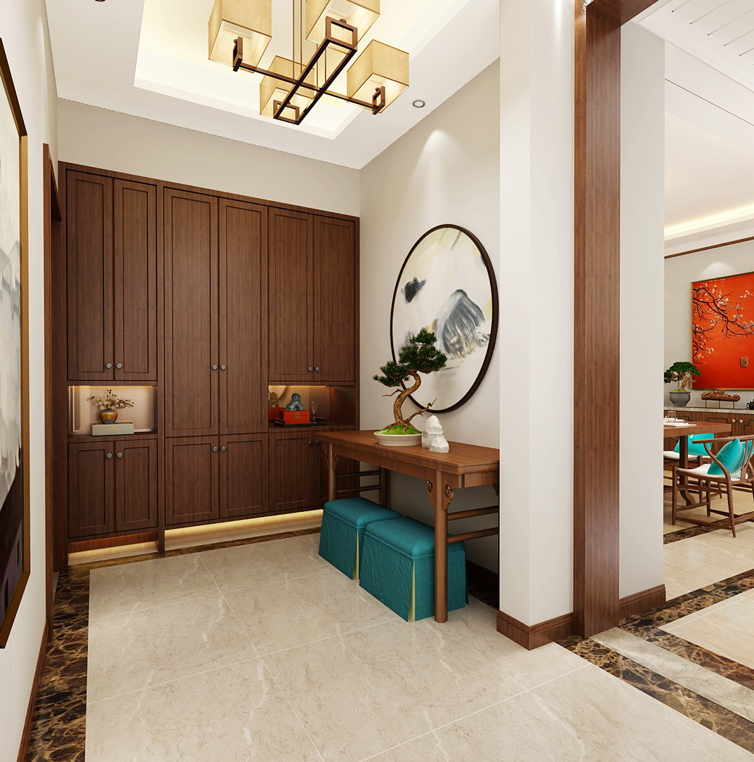 市直三區(qū)260㎡平層走廊新中式風格裝修案例效果圖