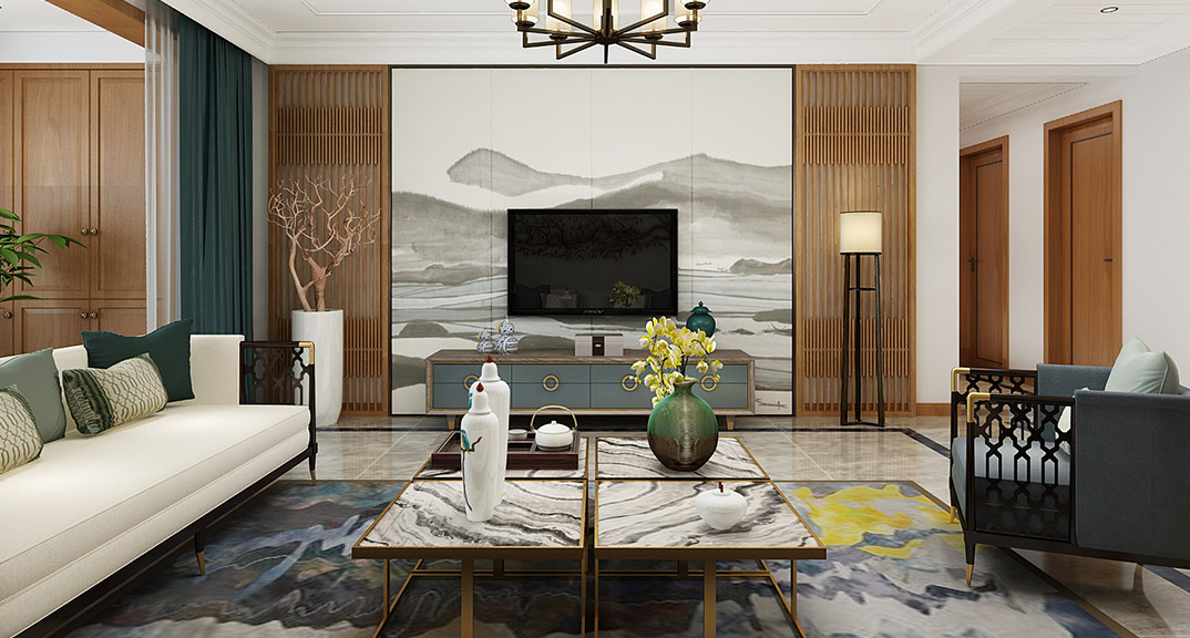 市直三區(qū)193㎡四室兩廳客廳電視美式風格裝修案例效果圖