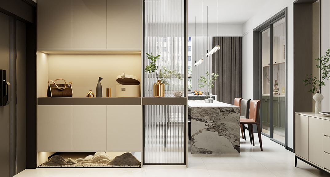 銀澳花園120㎡兩室一廳玄關(guān)輕奢風(fēng)格裝修案例效果圖