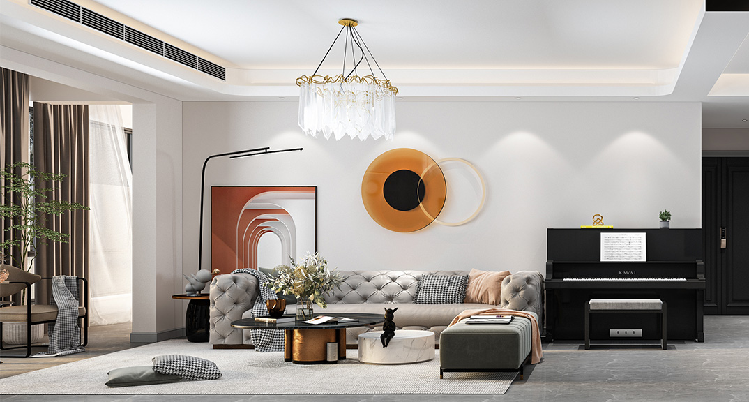 安泰悅湖灣140㎡四室兩廳客餐廳沙發(fā)現(xiàn)代風格裝修案例效果圖