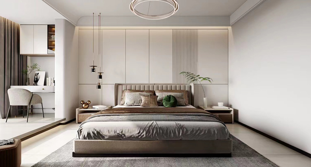 融創(chuàng)逸山136㎡三室兩廳臥室現(xiàn)代簡約風格裝修案例效果圖