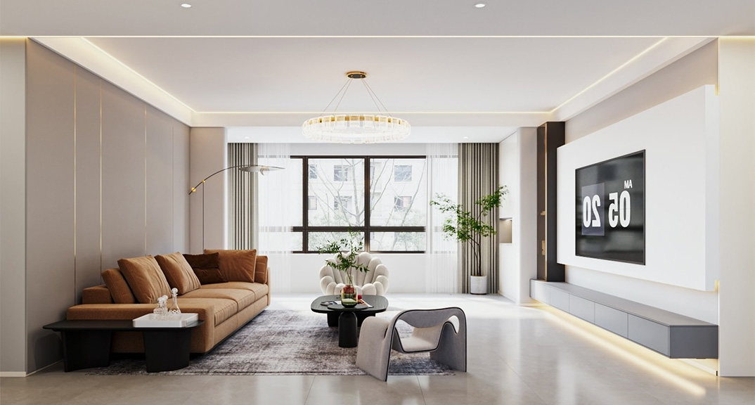 玖熙城160㎡四室兩廳客廳電視現(xiàn)代簡(jiǎn)約風(fēng)格裝修案例效果圖