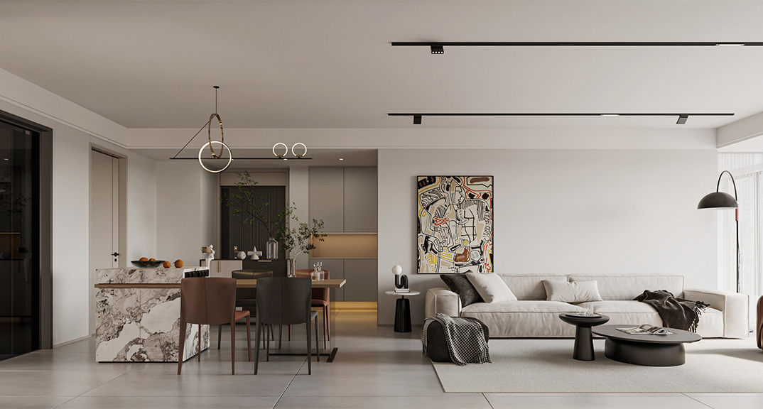 尚美云璟134㎡四室兩廳客餐廳現(xiàn)代簡約風(fēng)格裝修案例效果圖